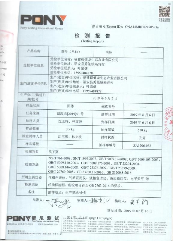 茶叶(八仙)检测报告