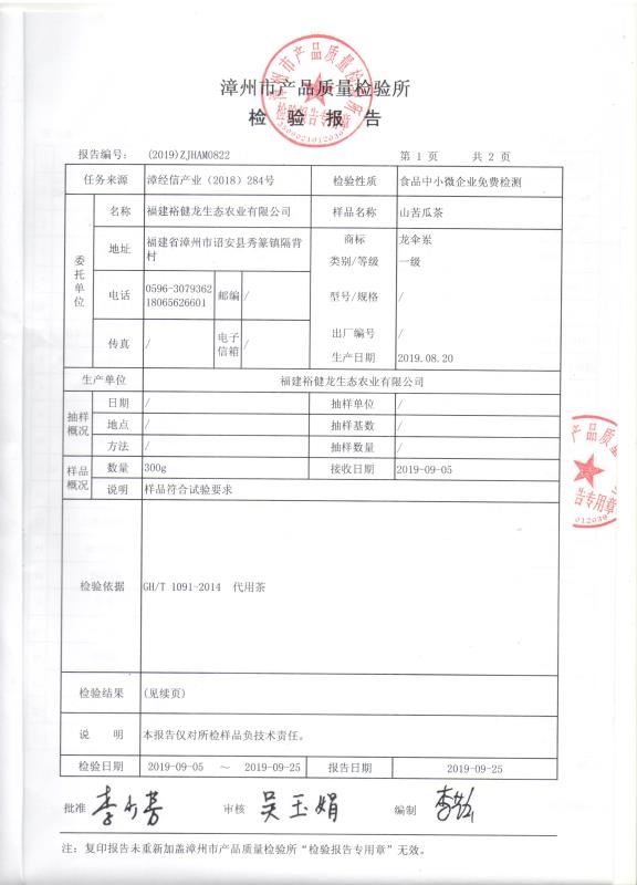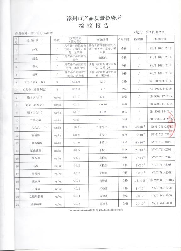 山苦瓜茶检验报告