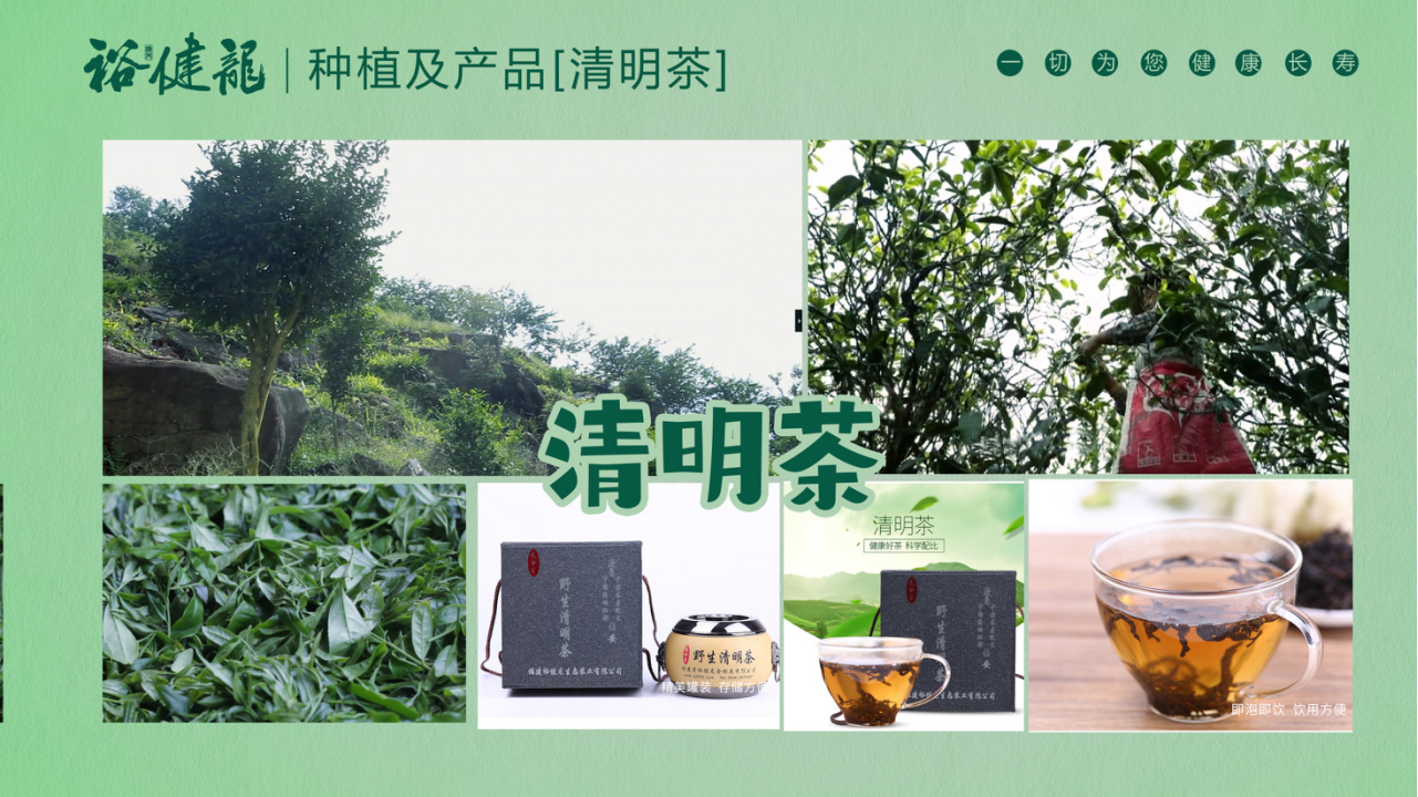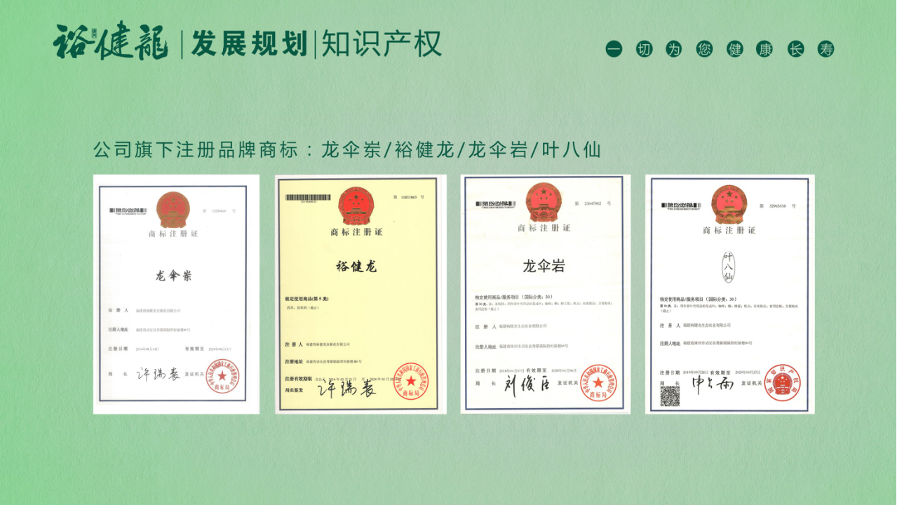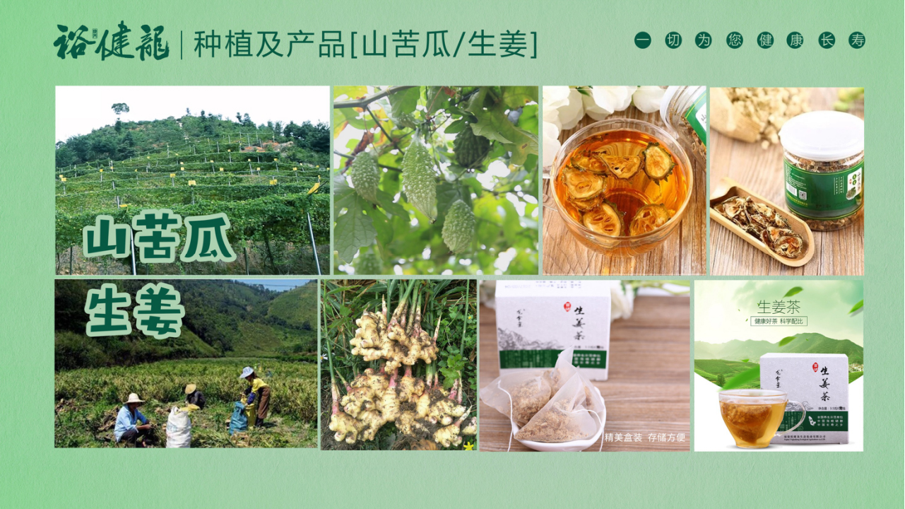福建裕健龙生态农业股份有限公司成立于2012年10月,注册资金8000万元,位于“中国海峡硒都”、“世界长寿之乡”——福建省漳州市诏安县。总投资约1亿元,是一家以种植富硒养生茶和发展生态旅游观光的省级重点龙头企业。主营野生清明茶、叶八仙茶、金银花茶、山苦瓜茶、生姜茶 、黄秋葵茶等富硒养生茶以及"栀子"、“观音串“、”公石松“、”牛大力“等富硒中药材的种植,加工和销售。拥有“龙伞岽”、“裕健龙”、“龙伞岩”、 “叶八仙”, “本崖”五个品牌商标。
